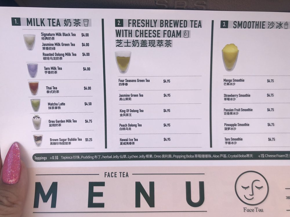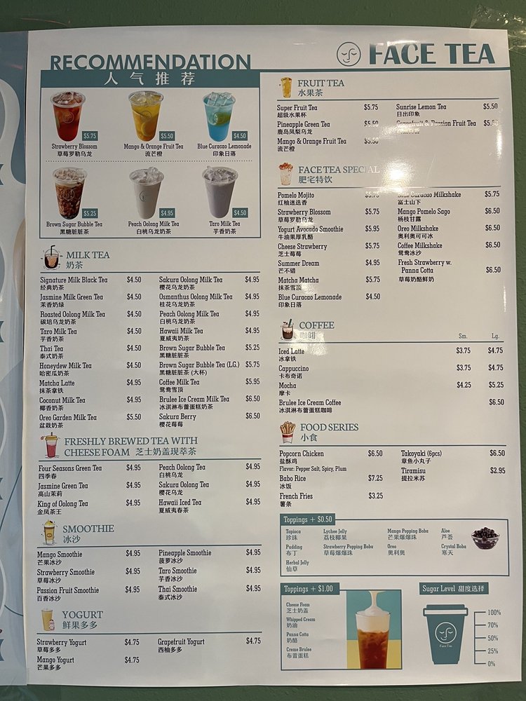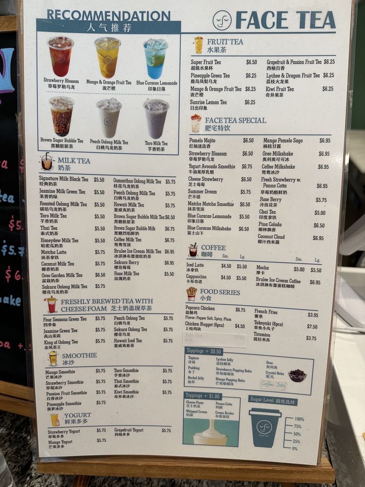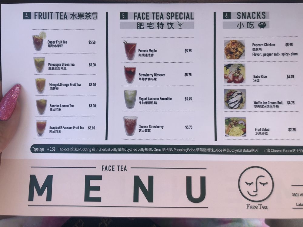 Face Tea, located in Lake Mary, FL, is a popular boba spot offering a variety of bubble tea flavors and toppings. Customers love the consistent taste of their drinks, with favorites like taro smoothie and peach oolong milk tea. The boba pearls are praised for their soft and chewy texture. In addition to drinks, their menu includes tasty food items like popcorn chicken and baos. The customizable options, such as adjusting sweetness levels and ice, make for a personalized experience. The chill vibe, good music, and board games provide a welcoming environment to enjoy your bubble tea fix. With reasonable prices and a rewards program, Face Tea is a must-visit for bubble tea enthusiasts looking for a delicious and enjoyable experience.